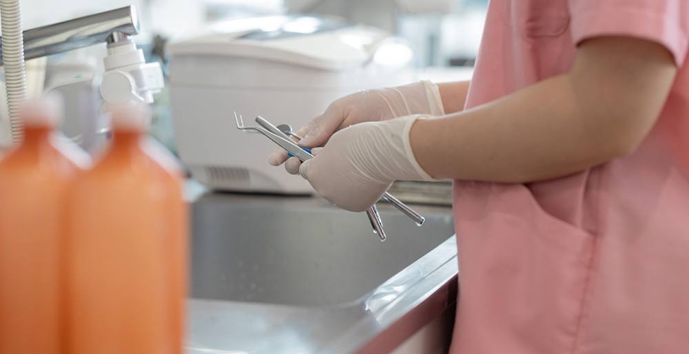 安心して治療をお受けいただけますように様々な滅菌装置を使用し、一日に何度も滅菌を行います。器具の使いまわし、クリーニングやお子様のフッ素後の歯ブラシの使いまわしも一切いたしておりません。歯ブラシはお帰りの際にどうぞお持ち帰りください