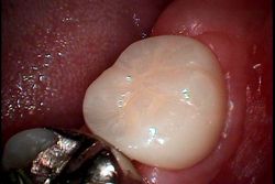 オールセラミックの白いかぶせ物をセットし