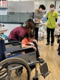車いすの扱い方、腰を痛めない動き方、患者様の日常のご様子等、普段の診療では知り得ることのできないお話をたくさんお伺いでき、実生活でも役立つことがあるように感じました。